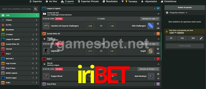 O iribet oferece uma grande seleção de opções de apostas em e-sports com probabilidades competitivas